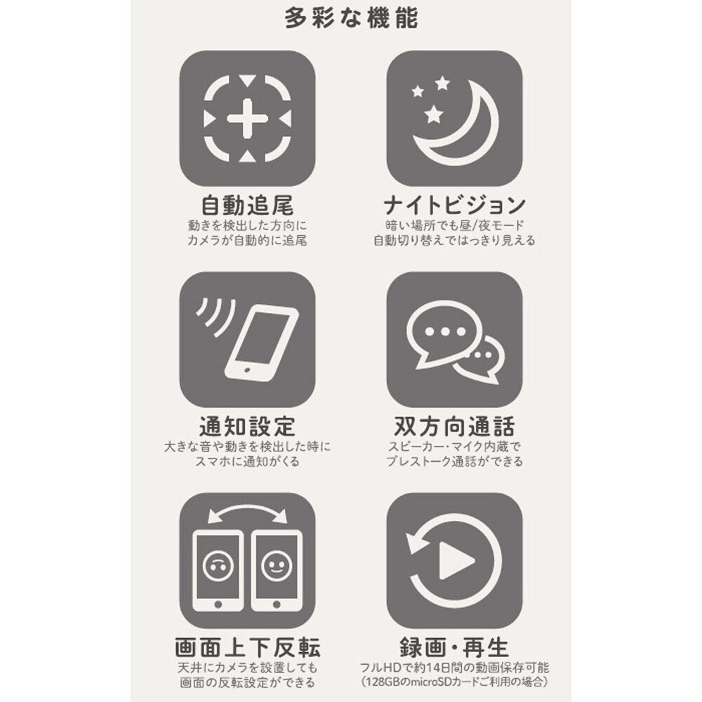 フルHDで約14日間の動画保存可能です。(128GBのmicroSDカードご利用の場合)
